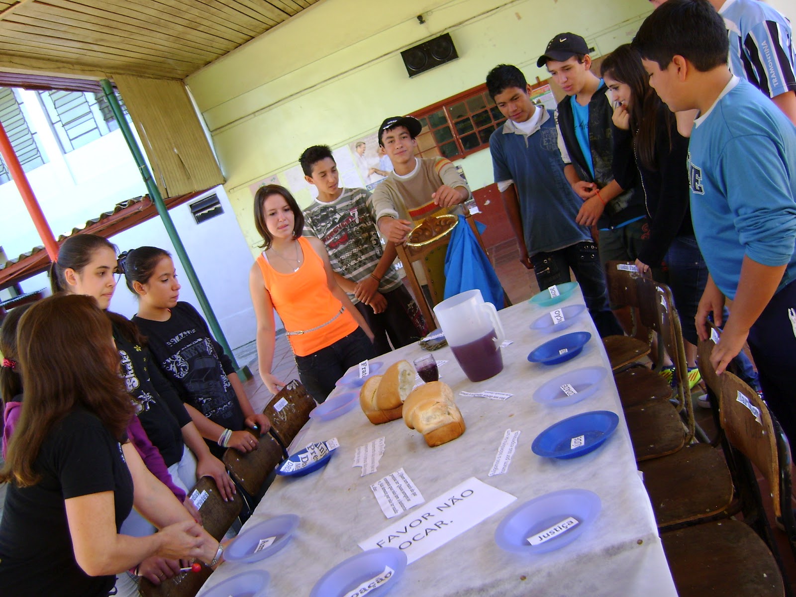 A professora Leda Ferst, formada em Artes, desafiou os alunos do Ensino Médio para fazer a releitura desta obra neste momento da Páscoa, e instigou os mesmos como seria os apóstolos em relação aos valores que norteiam a nossa sociedade atualmente.